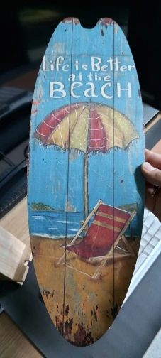 Beach Themed Vintage Wooden Surfboard Sign