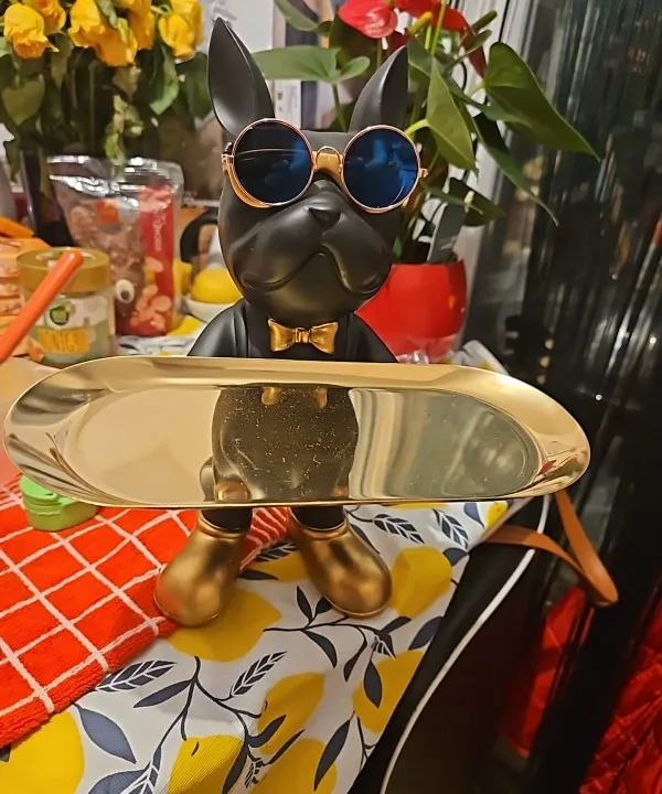 More than just a decorative piece, the bulldog statue doubles as a storage tray. It can be used to store a variety of items, from candies and cookies to keys and glasses, keeping your space organized.